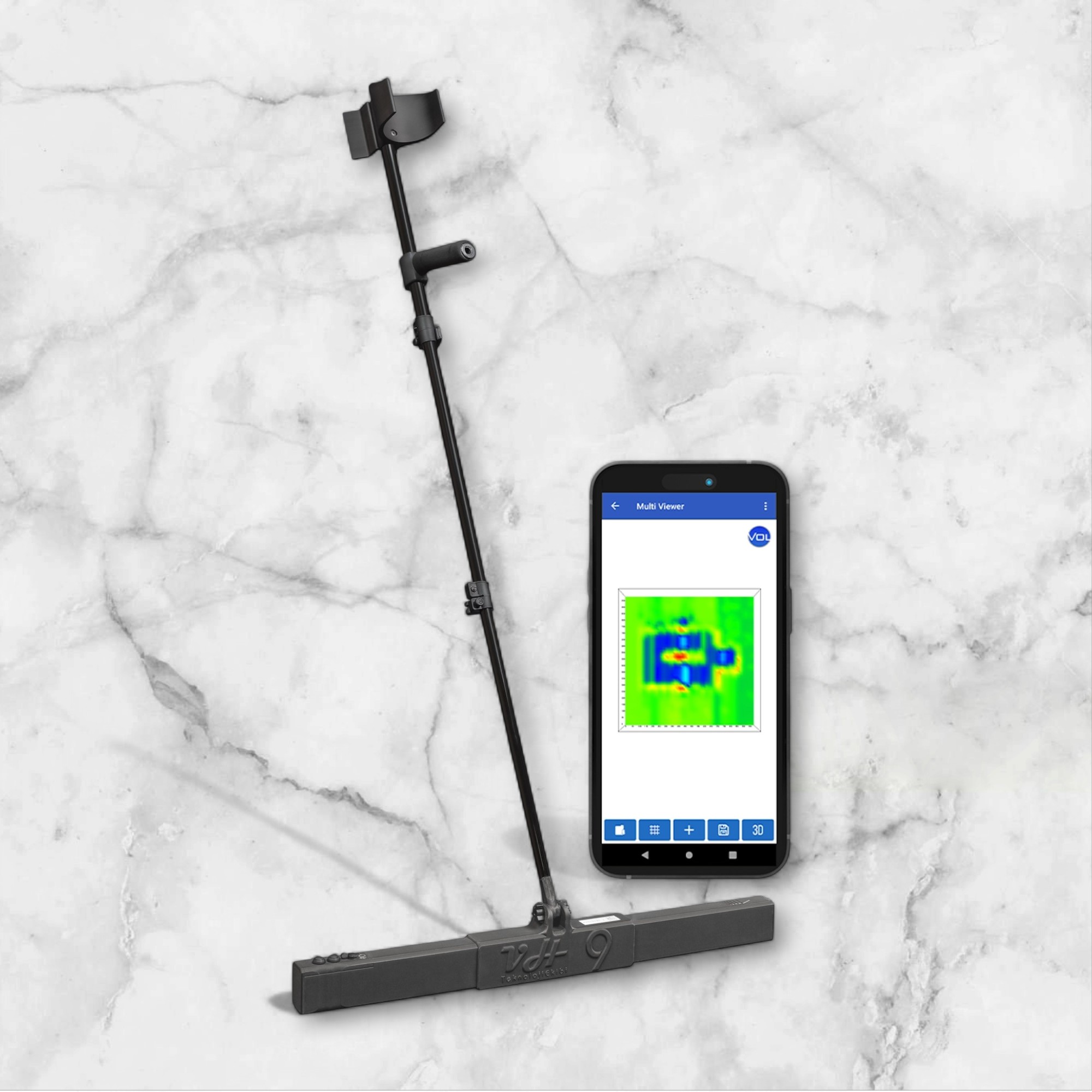 vh9 détecteur de métaux et cavité Connectez votre smartphone Android au VH9 Multisensor 3D et visualisez les graphiques 3D du sous-sol scanné. Vous n’avez pas besoin d’un ordinateur ou d’un boîtier système pour l’analyse des données. Il offre la possibilité d’analyser graphiquement la zone numérisée avec les résultats les plus précis. VH9 Multisensor 3D est compatible avec vos appareils mobiles, tablettes et ordinateurs Android, vous n’avez besoin que de votre smartphone pour l’utiliser.
